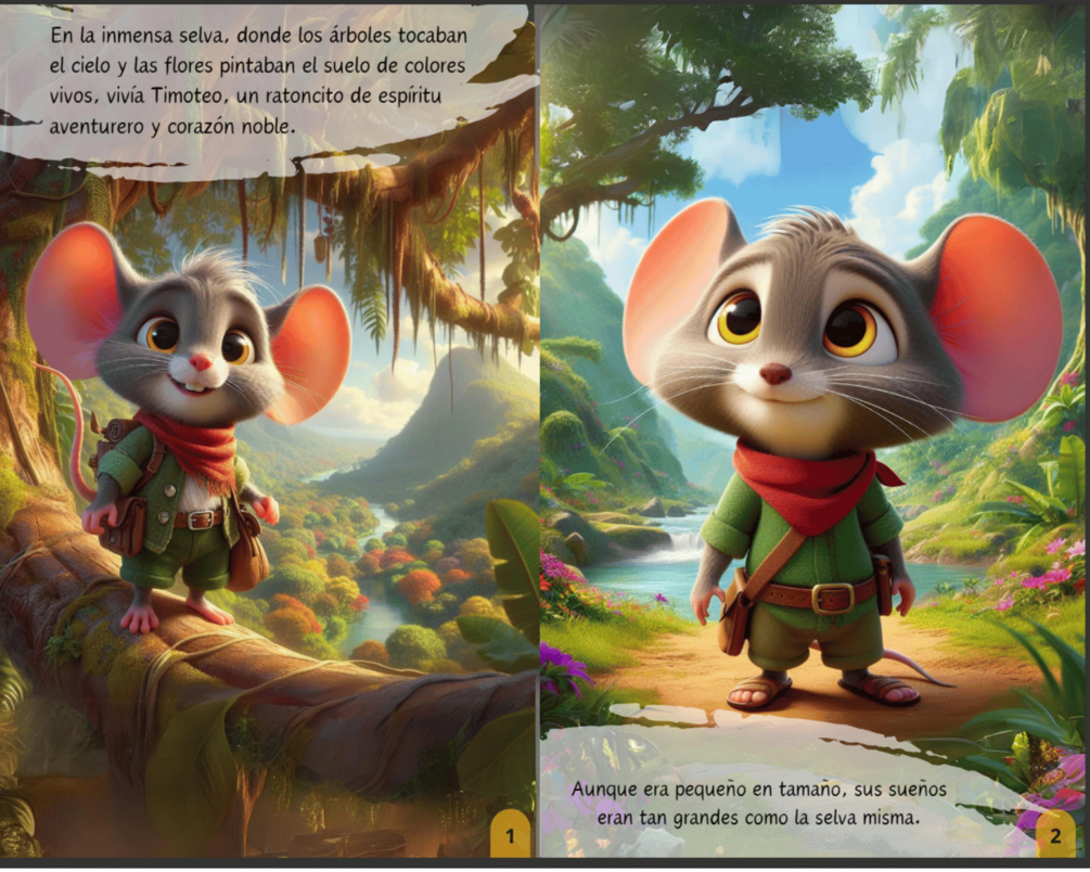 En la inmensa selva, vivía Timoteo, un ratoncito de espíritu aventurero y corazón noble. Aunque era pequeño en tamaño, sus sueños eran tan grandes como la selva misma. Descubre esta increible historia del ratoncito que llega a convertirse en un héroe.